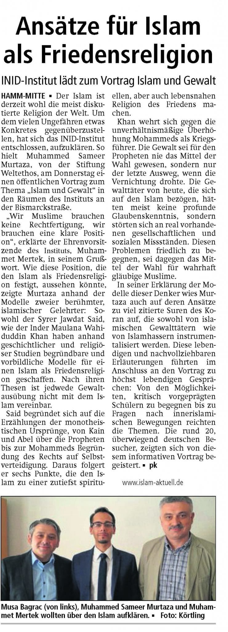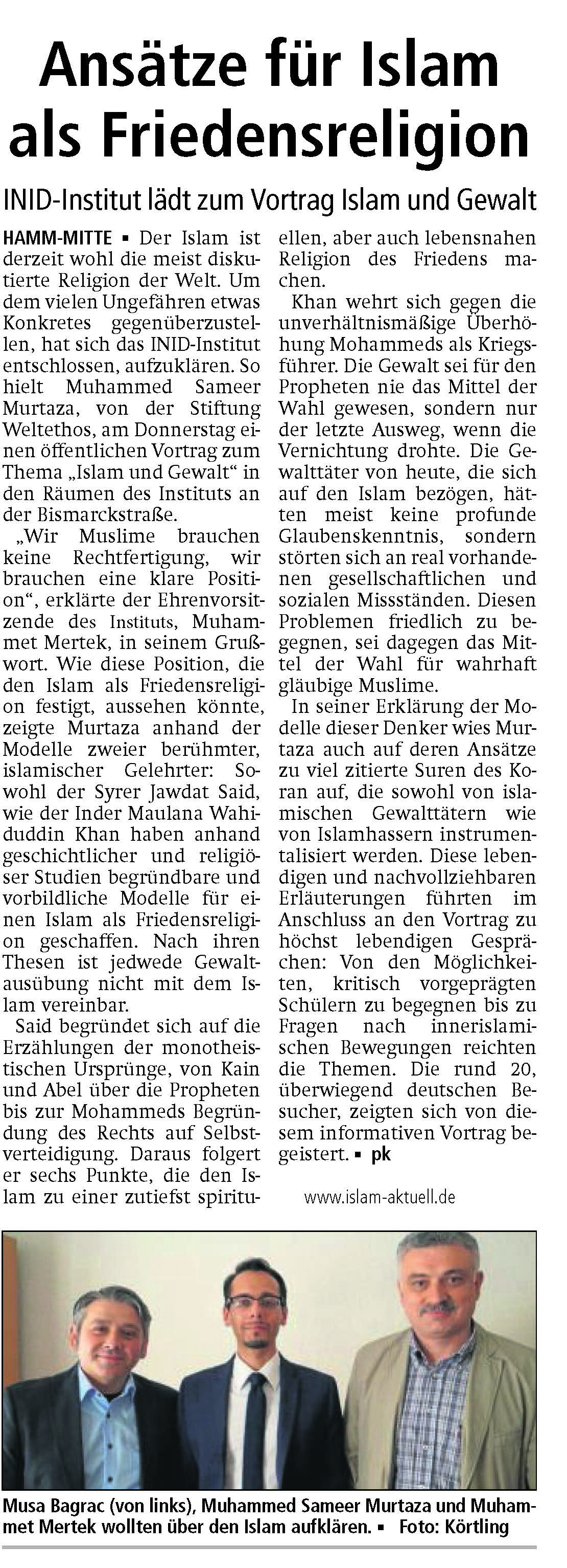 Berichterstattung der Westfälischer Anzeiger über unsere Veranstaltung „Islam und Gewalt“ am 19.05.2016.